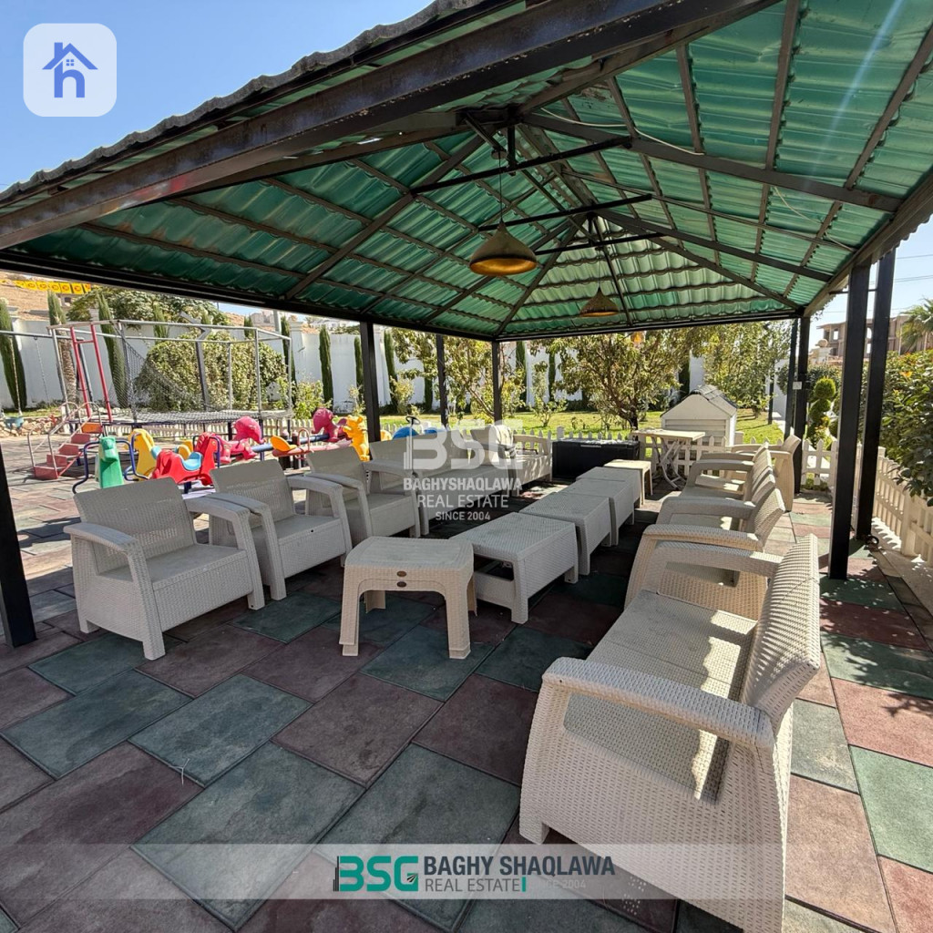 مزرعة مؤثثة للبيع، في أربيل، طريق مصيف، المساحة 3000 متر مربع، بسعر 65 دفتر (650,000$). تتكون من: - 8 غرف نوم - 1 مطبخ - 2 غرف المعيشة - 1 صالة - 3 حمام