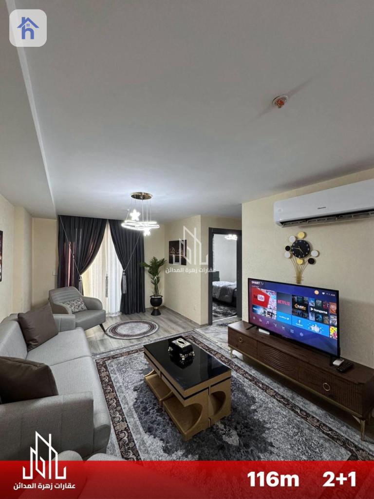 شقة مؤثثة للإيجار، في أربيل، لايف تاورز، المساحة 116 متر مربع، بسعر 6 اوراق و 50 دولار/شهريا (650$). تتكون من: - 2 غرف نوم - 1 مطبخ - 1 صالة - 2 حمام - طابق : 19