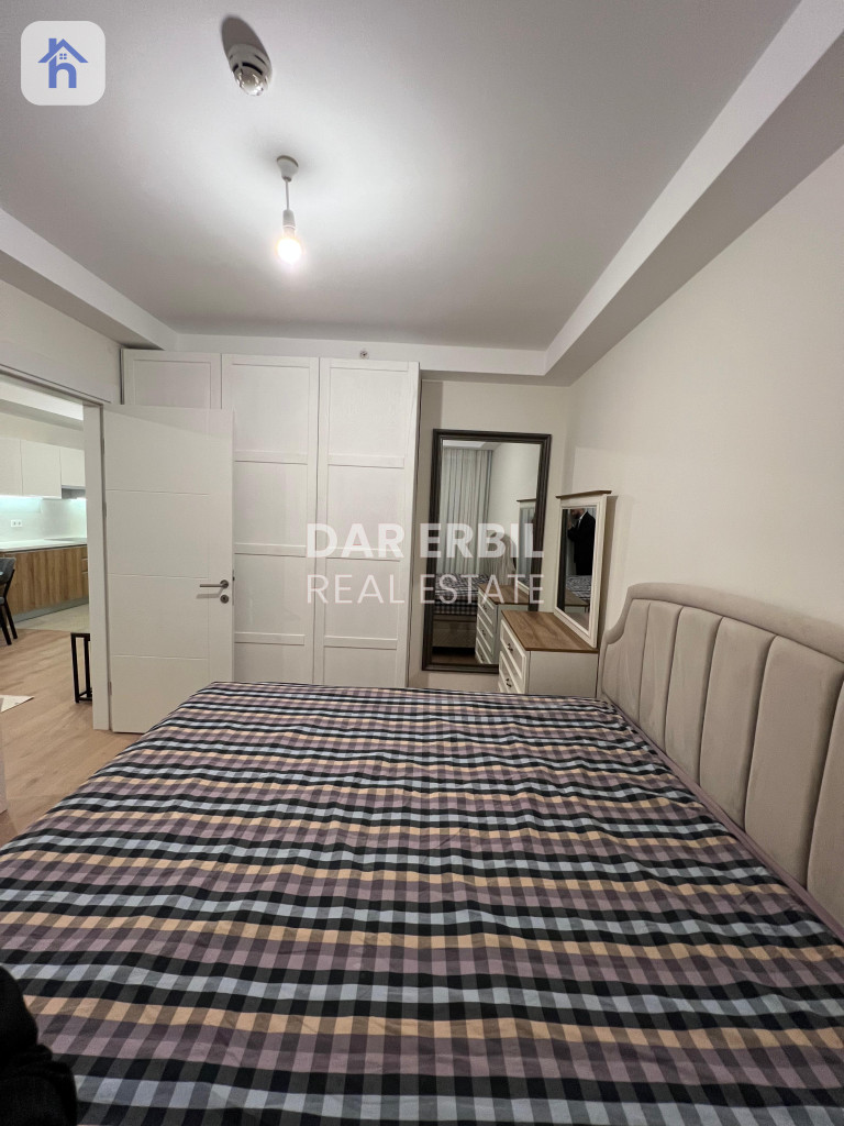 شقة مؤثثة للإيجار، في أربيل، امباير وينكز، المساحة 80 متر مربع، بسعر 7 اوراق/شهريا (700$). تتكون من: - 1 غرفة نوم - 1 مطبخ - 1 صالة - 1 حمام - طابق : 15