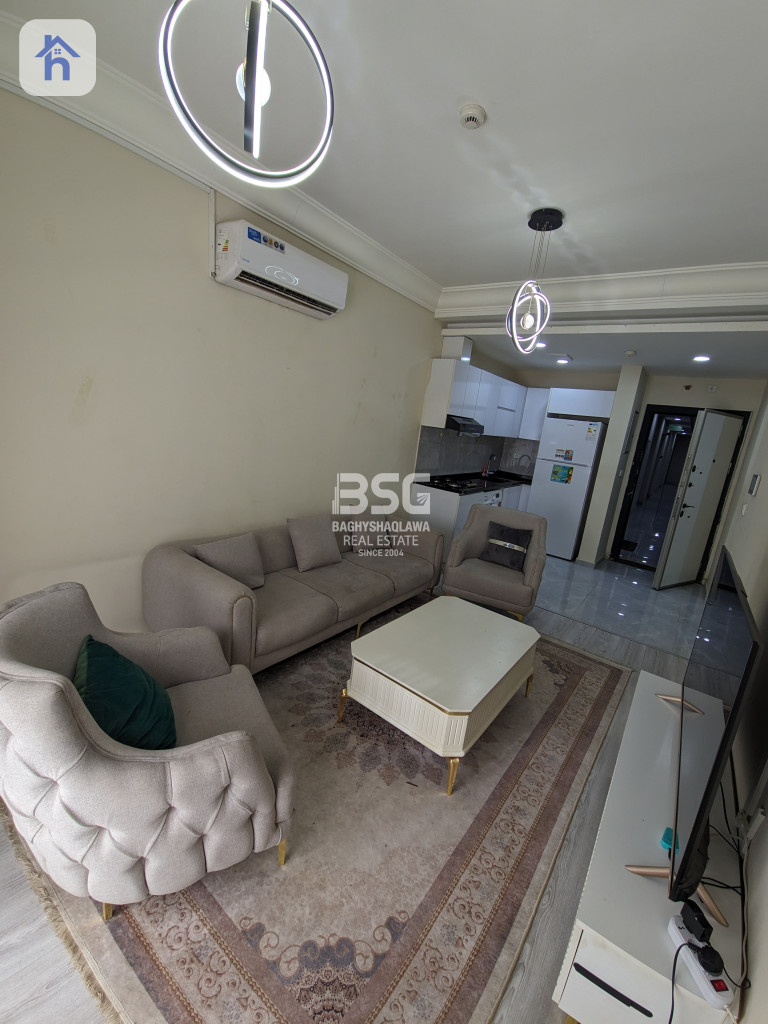 شقة مؤثثة للإيجار، في أربيل، اسكان تاورز، المساحة 68 متر مربع، بسعر 3 اوراق و 50 دولار/شهريا (350$). تتكون من: - 1 غرفة نوم - 1 مطبخ - 1 صالة - 1 حمام - طابق : 25