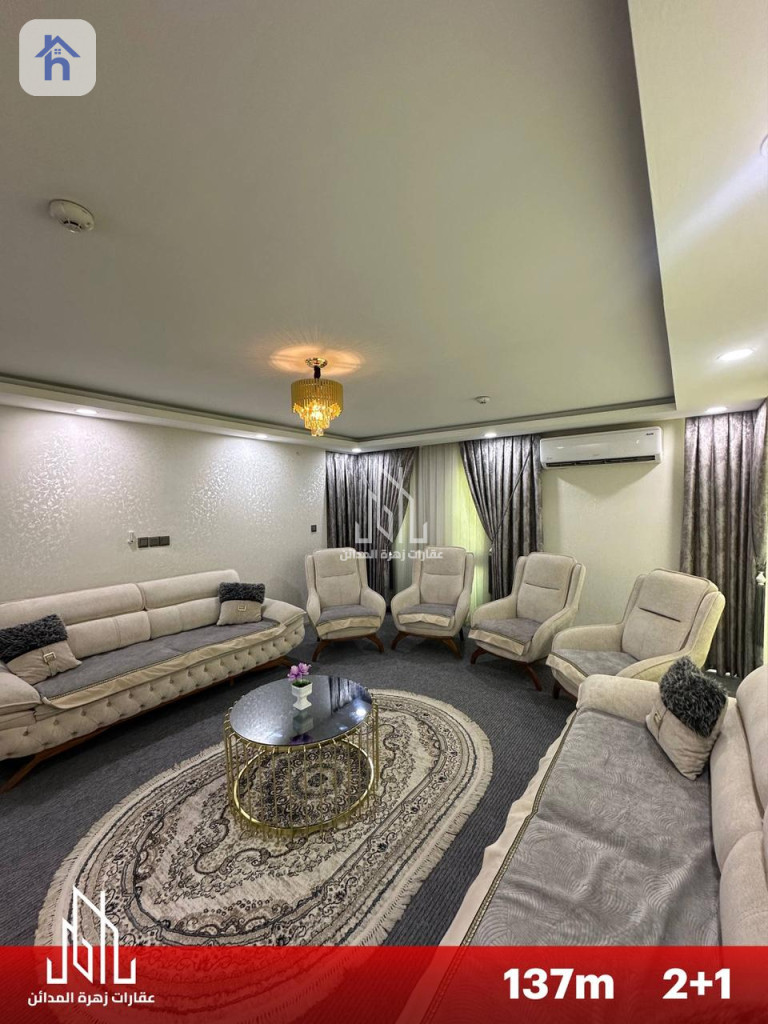 شقة مؤثثة للإيجار، في أربيل، لايف تاورز، المساحة 137 متر مربع، بسعر 7 اوراق و 50 دولار/شهريا (750$). تتكون من: - 2 غرف نوم - 1 مطبخ - 1 صالة - 1 حمام - طابق : G