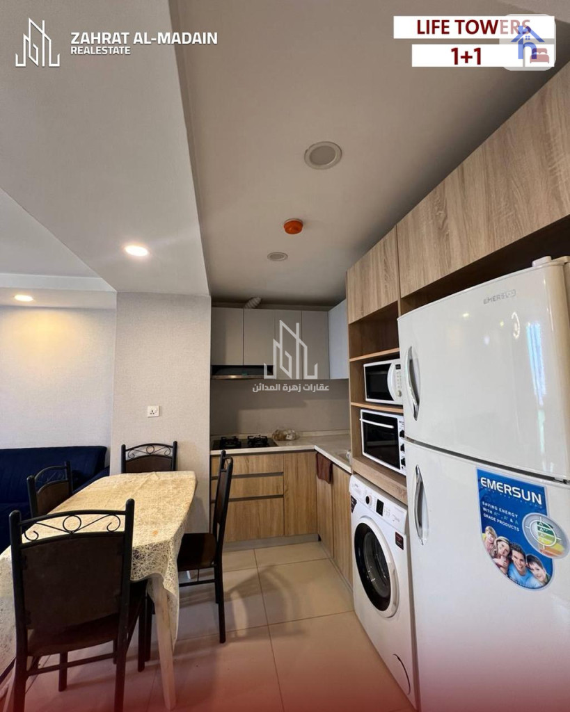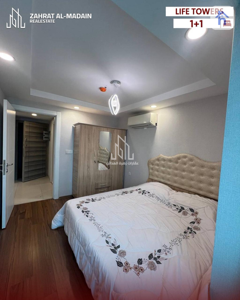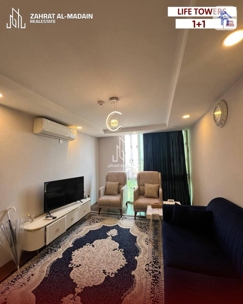 شقة مؤثثة للإيجار، في أربيل، لايف تاورز، المساحة 50 متر مربع، بسعر 4 اوراق/شهريا (400$). تتكون من: - 1 غرفة نوم - 1 مطبخ - 1 صالة - 1 حمام - طابق : 3