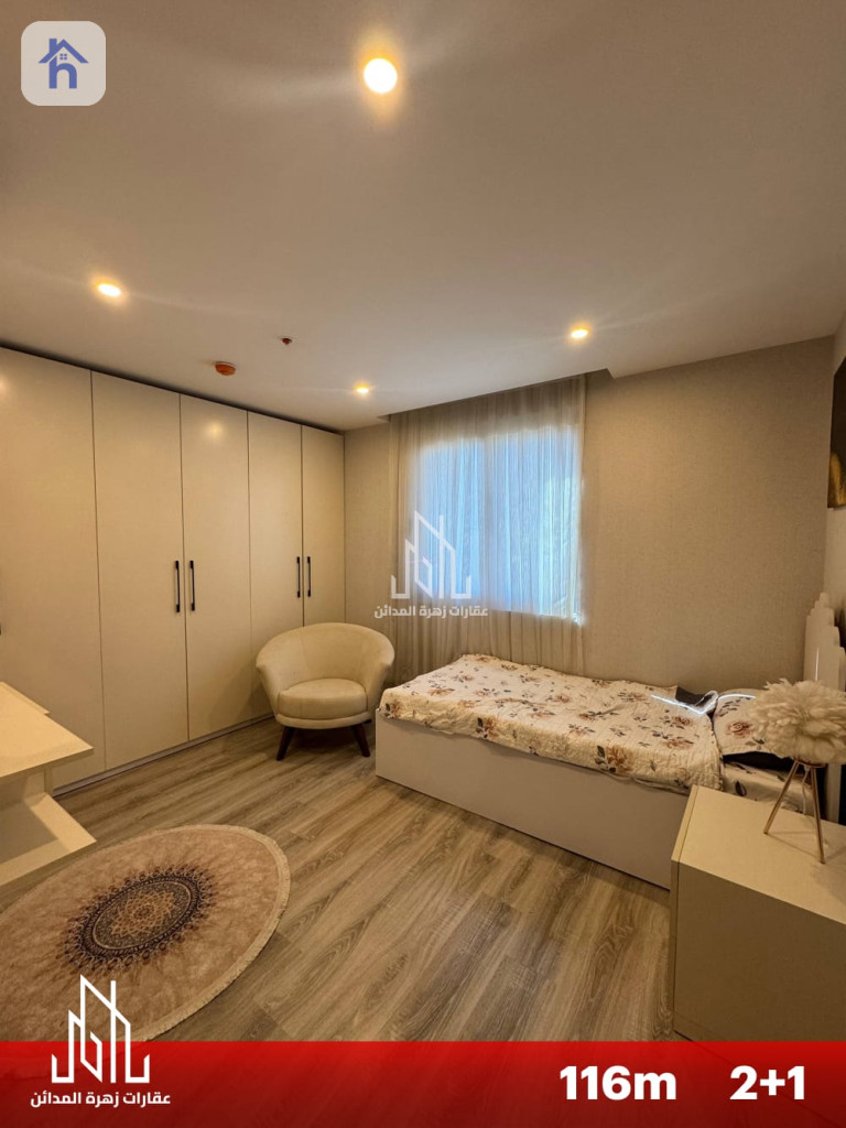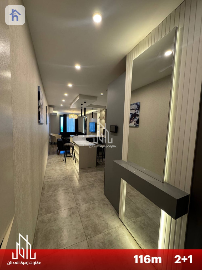شقة مؤثثة للإيجار، في أربيل، لايف تاورز، المساحة 116 متر مربع، بسعر 7 اوراق/شهريا (700$). تتكون من: - 2 غرف نوم - 1 مطبخ - 1 صالة - 2 حمام - طابق : 18