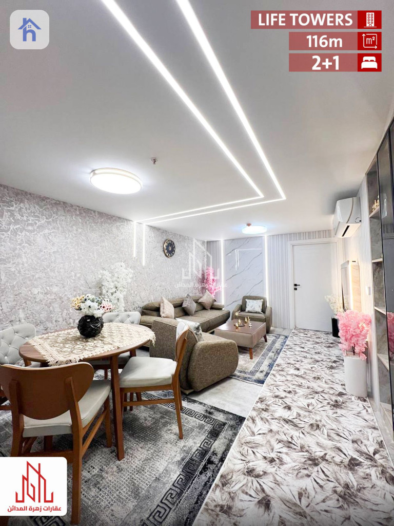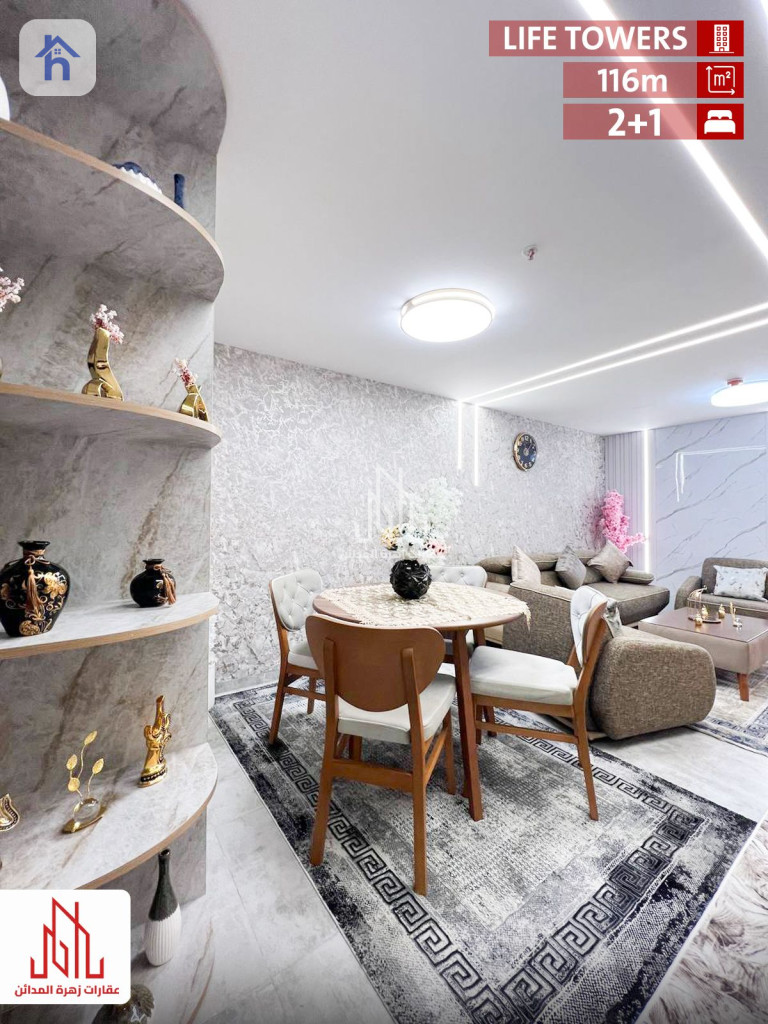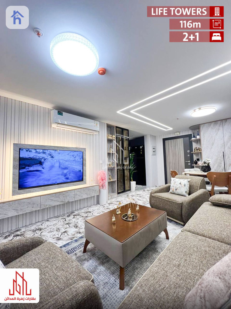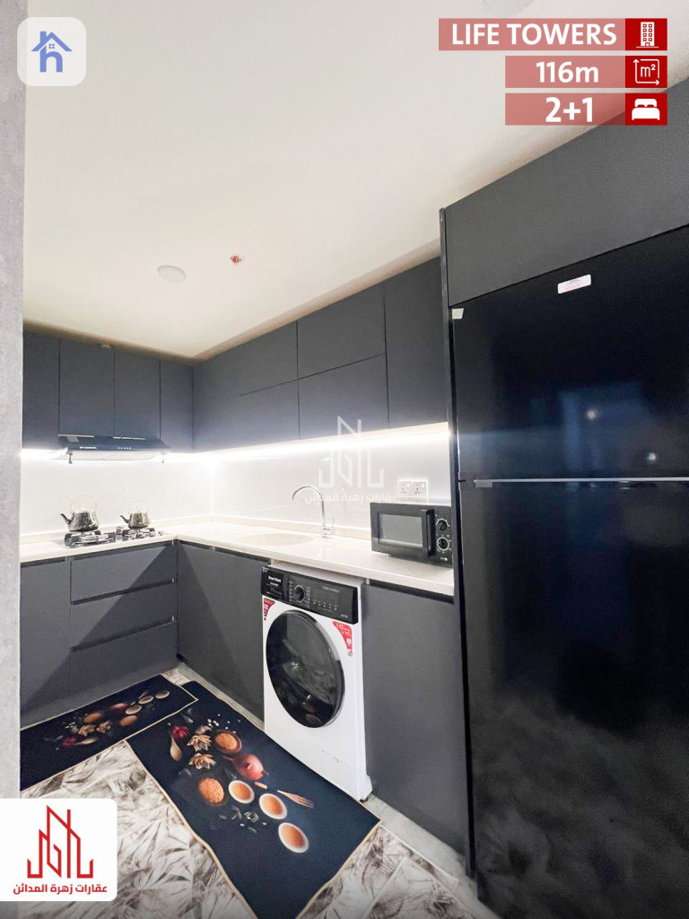 شقة مؤثثة للإيجار، في أربيل، لايف تاورز، المساحة 110 متر مربع، بسعر 7 اوراق و 50 دولار/شهريا (750$). تتكون من: - 2 غرف نوم - 1 مطبخ - 1 صالة - 1 حمام - طابق : 2
