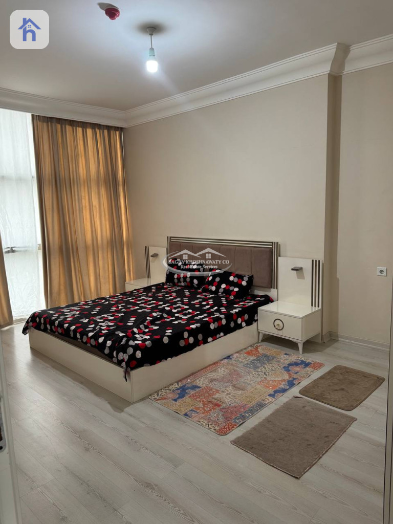 شقة مؤثثة للإيجار، في أربيل، اسكان تاورز، المساحة 75 متر مربع، بسعر 3 اوراق و 50 دولار/شهريا (350$). تتكون من: - 1 غرفة نوم - 1 مطبخ - 1 صالة - 1 حمام - طابق : 4