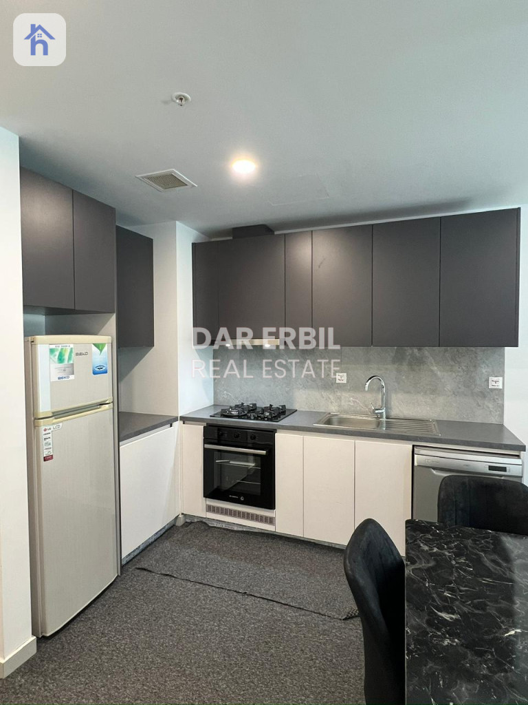 شقة مؤثثة للإيجار، في أربيل، بختياري توين تاورز، المساحة 81 متر مربع، بسعر 5 اوراق/شهريا (500$). تتكون من: - 1 غرفة نوم - 1 مطبخ - 1 صالة - 1 حمام - طابق : 21