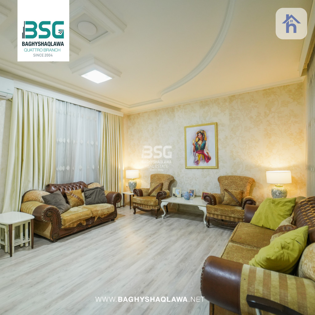 خانوو بۆ فرۆشتن، لە هەولێر، بەختیاری، ڕووبەری 200 مەتر دووجایە، بە نرخی 29 دەفتەر (290,000$) (مامەڵەی تێدایە). پێکهاتووە لە: - 4 ژووری نوستن - 2 چێشتخانە - 1 ژووری میوان - 1 هۆڵ - 4 گەرماو - نهۆمی : 3