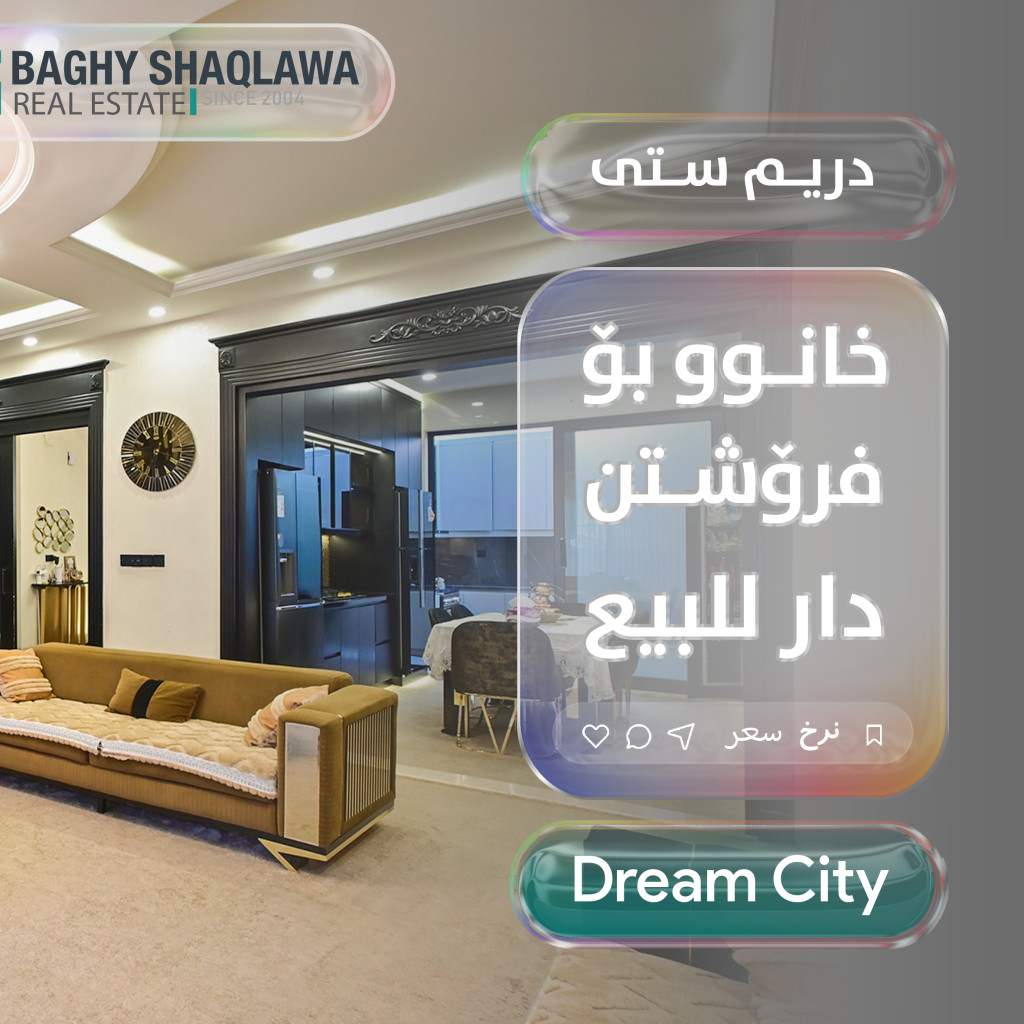 خانووی ڕاخراو بۆ فرۆشتن، لە هەولێر، دریم ستی، ڕووبەری 250 مەتر دووجایە، بە نرخی 62 دەفتەر (620,000$) (مامەڵەی تێدایە). پێکهاتووە لە: - 5 ژووری نوستن - 1 چێشتخانە - 2 ژووری میوان - 1 هۆڵ - 5 گەرماو - نهۆمی : 2