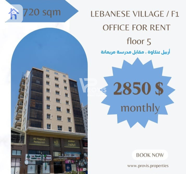 Commercial Floor For Rent, located in Erbil, Old Ankawa, with an area of 720m² the price is $2,850/Monthly (Negotiable). Consists of: - Floor number: 5