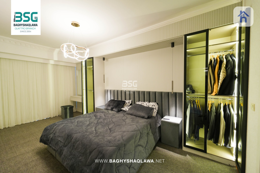 Furnished Apartment For Sale, located in Erbil, MRF Quattro Towers, with an area of 123m², the price is $97,500 (Negotiable). Consists of: - 2 Bedrooms - 1 Kitchen - 1 Hall - 2 Bathrooms - Floor number: 27