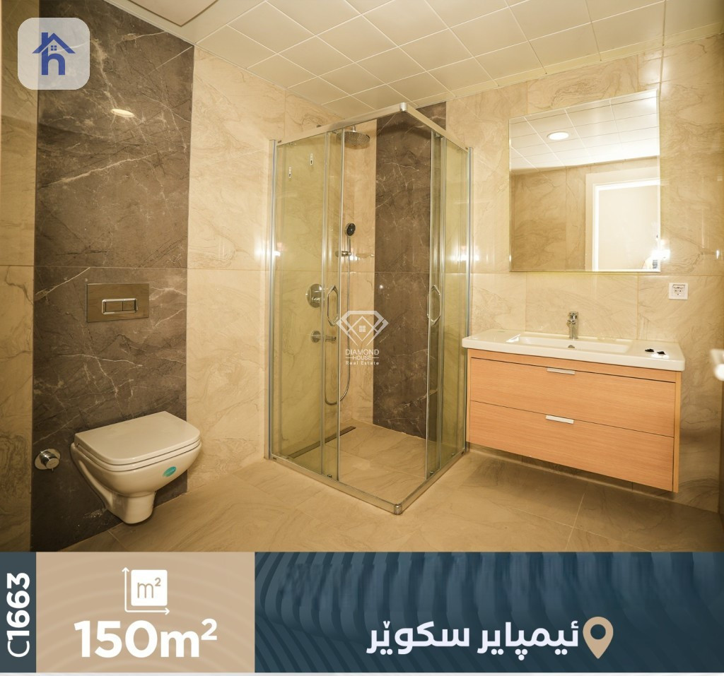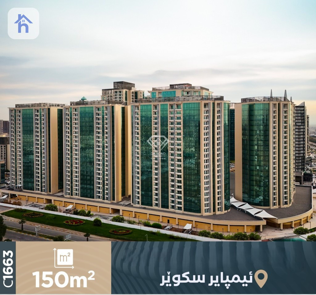 Apartment For Sale, located in Erbil, Empire Square, with an area of 150m², the price is $160,000 (Negotiable). Consists of: - 2 Bedrooms - 1 Kitchen - 1 Living Room - 2 Bathrooms - Floor number: 15